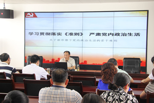首先,全体党员面对党旗,重温入党誓词,缴纳本月党费。然后,市总党组书记官庆军以《学习贯彻落实“准则”; 严肃党内政治生活》为题讲授廉政党课,对《关于新形势下党内政治生活的若干准则》的出台背景、重要意义、重点内容和要求进行了全面解读,并结合案例具体地进行了分析讲解。通过本次党课学习,全体党员更加全面准确掌握《准则》的规范要求。<?xml:namespace prefix="o">