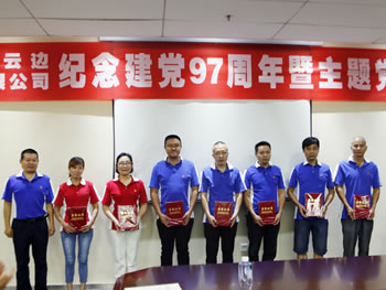 各基层支部现场缴纳6月份党费。会议对2个先进党支部、2名优秀党务工作者、17名优秀共产党员进行表彰,对13名党员示范岗授牌。