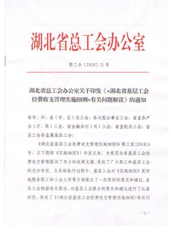 湖北省总工会办公室关于印发《<湖北省基层工会经费收支管理实施细则>有关问题解读》的通知